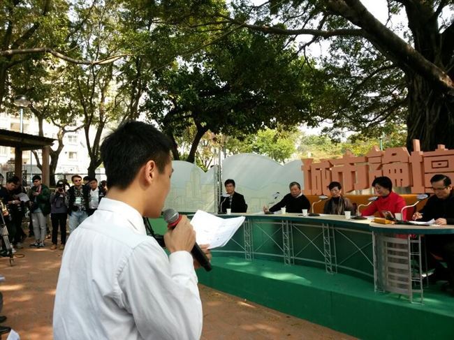本校公民教育組及通識教育科於2014年1月5日(星期日)安排了本校十位通識學會幹事及模擬法庭隊成員參與由香港電台主辦的城市論壇,對2014年特首施政報告作前瞻性討論,論題是「政改民生事事糾纏,C Y 施政點樣先掂?」出席嘉賓包括立法會議員李卓人先生、單仲偕先生、蔣麗芸女士及周梁淑怡女士。本校5A班韓家儒同學就本港強積金僱主供款與遣散費或長期服務金對沖的問題向立法會議員蔣麗芸女士提出意見及詢問其解決方法。而蔣麗芸議員的回應是這問題應該交由勞工顧問委員會跟進及處理。論壇完結後,蔣麗芸議員留步跟同學傾談及讚許,韓家儒同學亦向蔣女士提出本校申請新校舍的訴求,對此蔣麗芸議員表示支持。