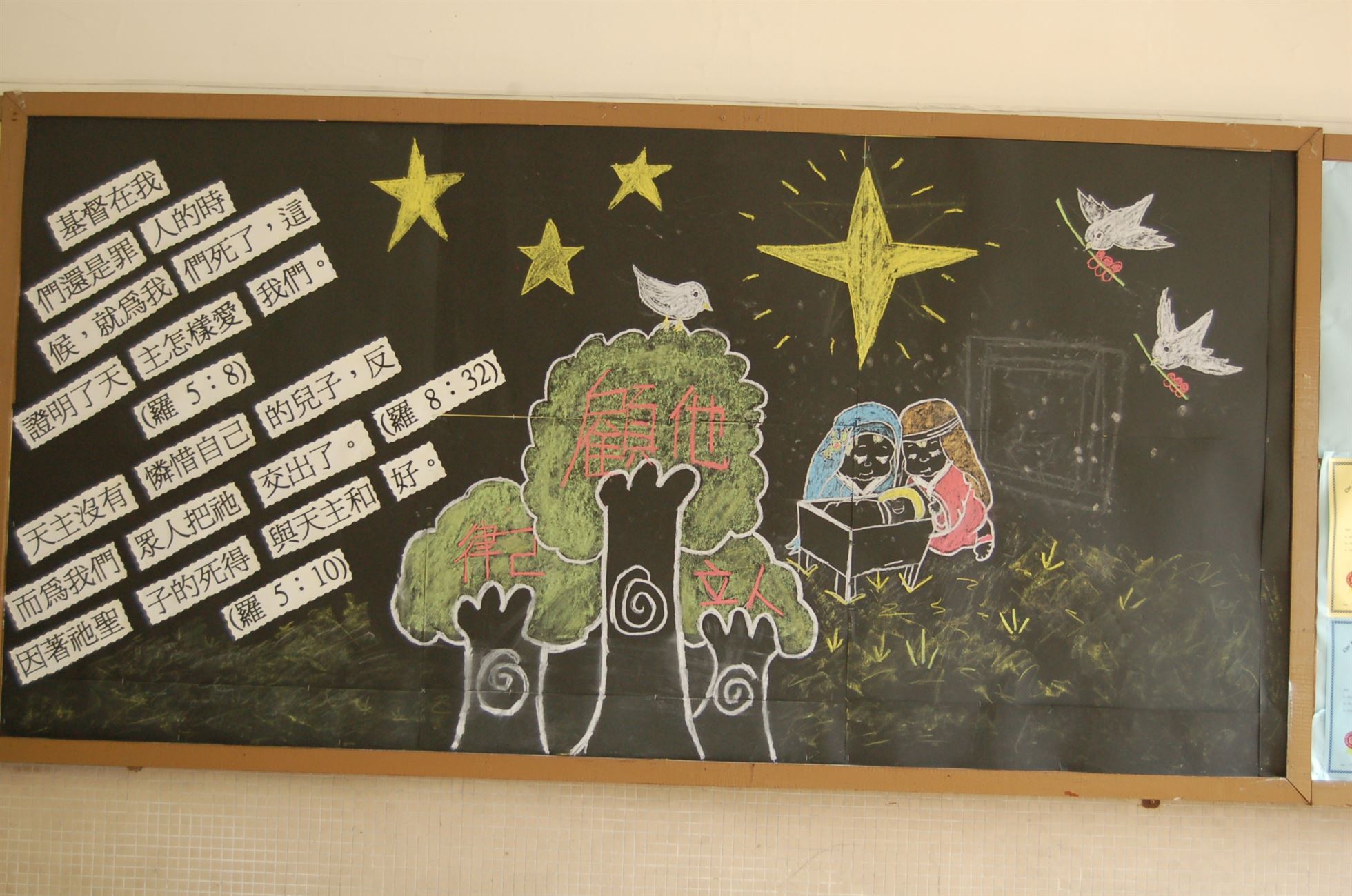 1. 把耶穌降生給世人的「聖誕精神」,配合班本的生活,藉壁報展現出來。