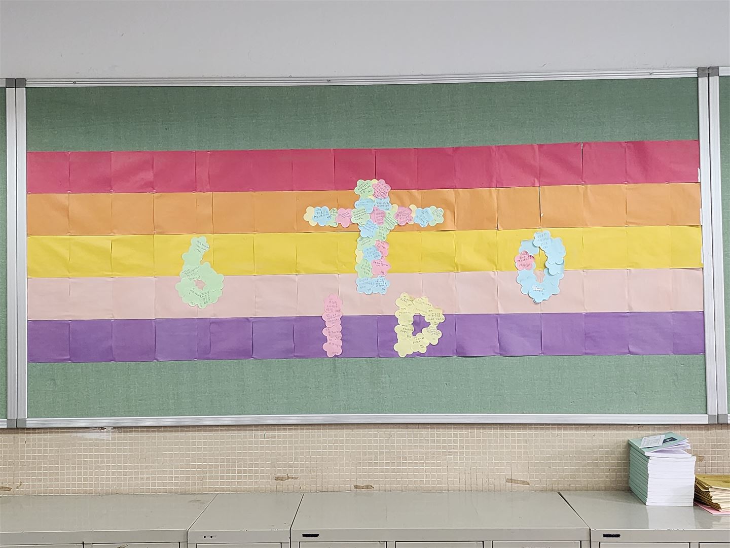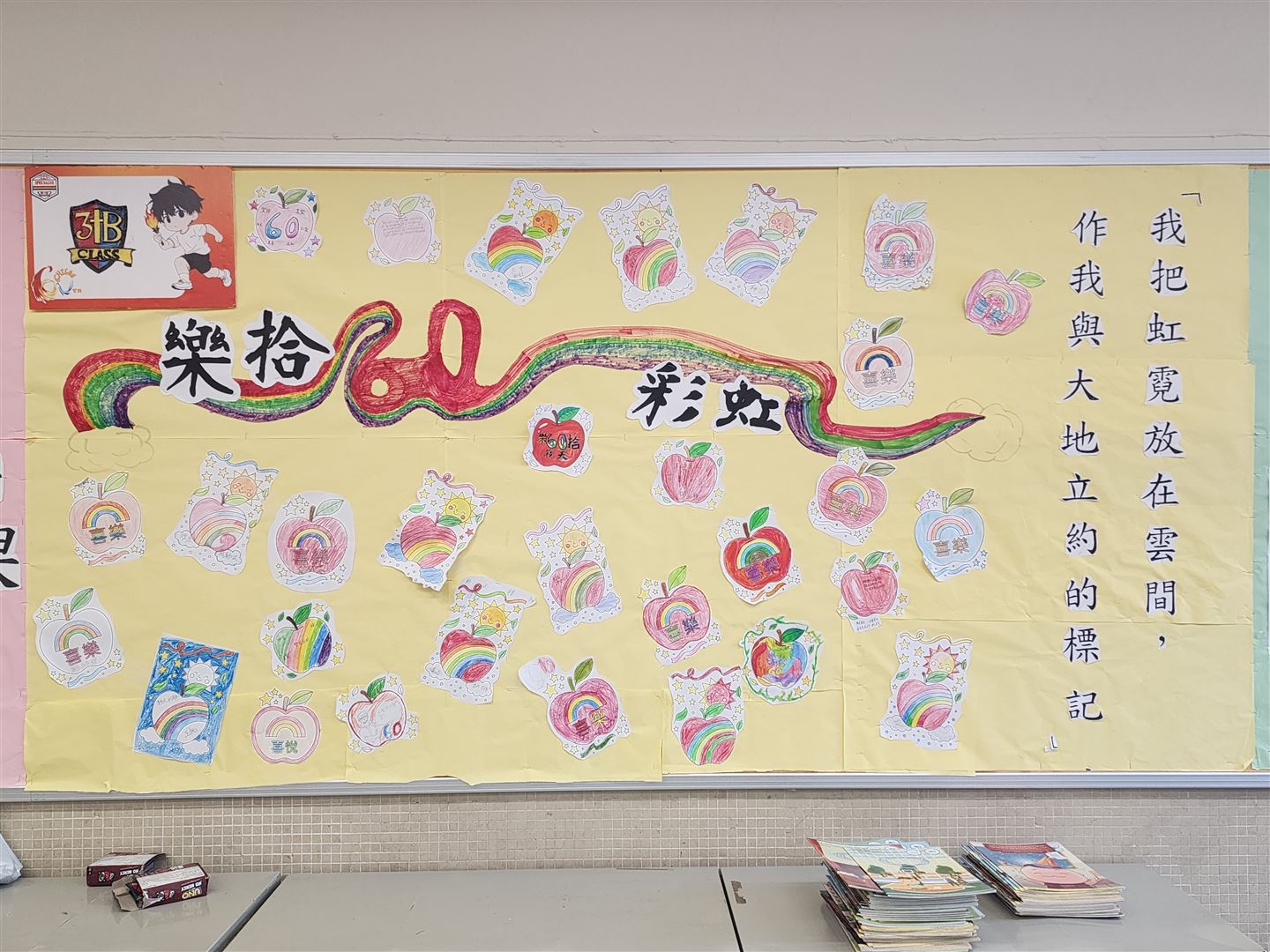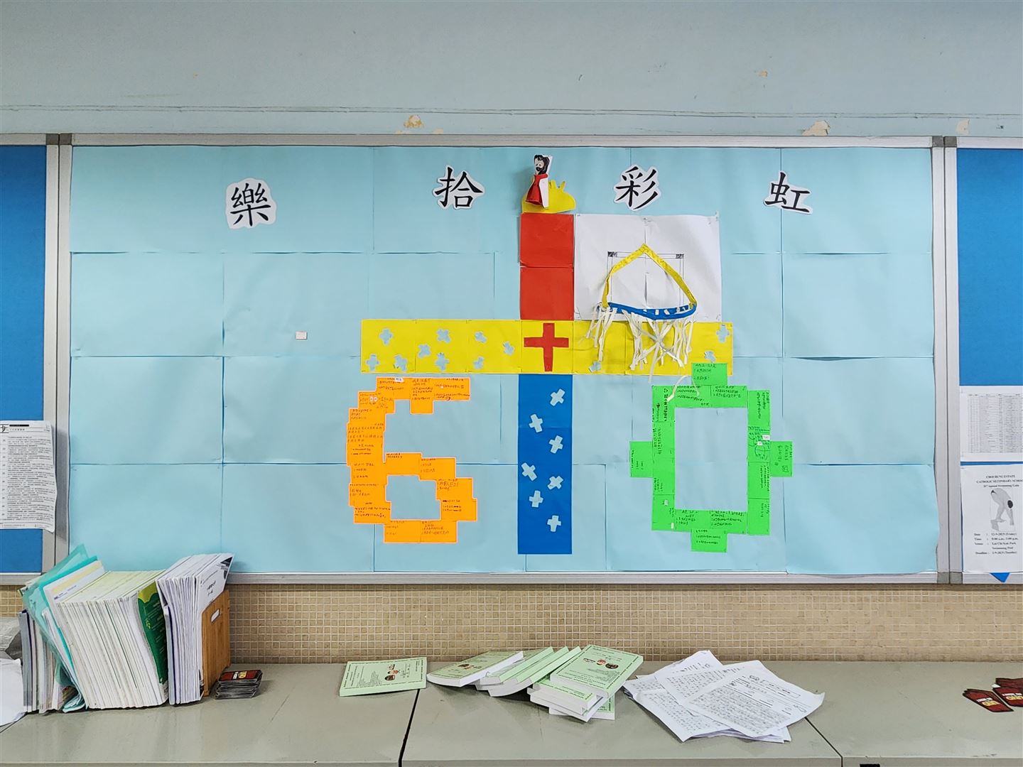 為慶祝彩虹邨天主教英文中學建校六十周年,宗教組特別舉辦「樂拾.彩虹」班際壁報設計比賽,藉此提升學生的宗教素養與創意表達。是次比賽以「樂拾彩虹」為主題,彩虹象徵天主的盟約與祝福,提醒我們天主常與我們同在,並以祂的愛陪伴我們生活。透過壁報創作,同學們能展現才華,在作品中融入宗教元素,引用聖經金句,共同表達對天主感恩的心;藉著色彩與文字,見證天主六十年來賜予學校的恩寵。恭喜以下得獎班別: