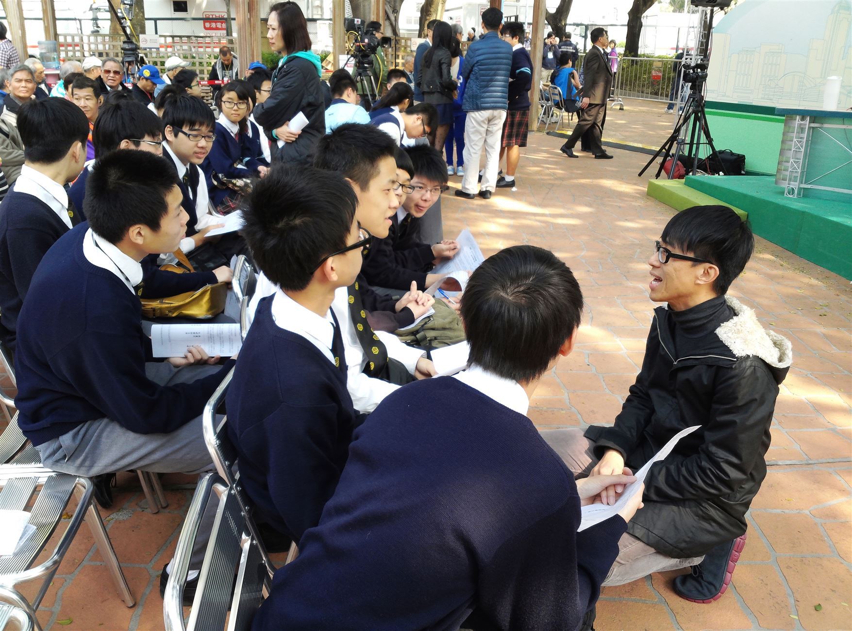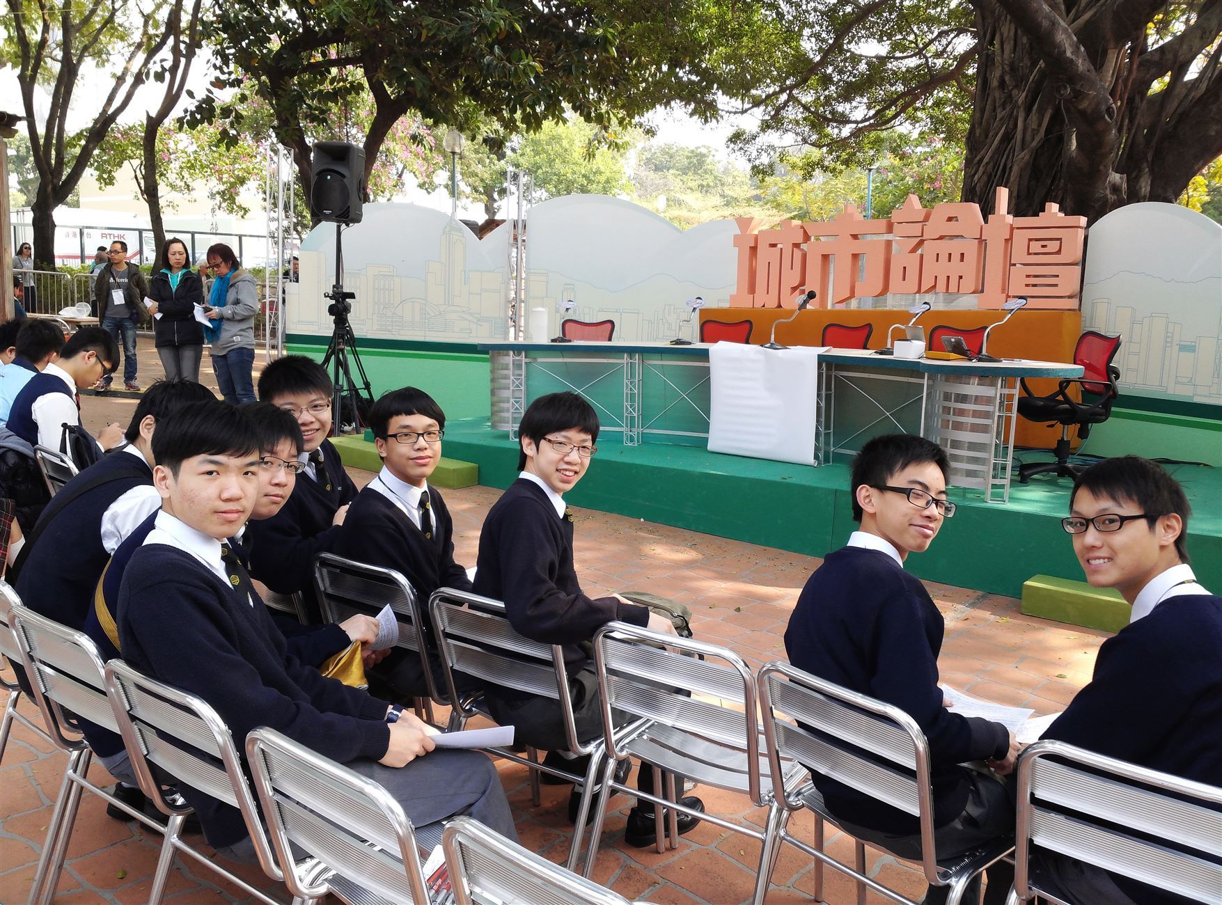 本校公民教育組及通識教育科於2014年1月5日(星期日)安排了本校十位通識學會幹事及模擬法庭隊成員參與由香港電台主辦的城市論壇,對2014年特首施政報告作前瞻性討論,論題是「政改民生事事糾纏,C Y 施政點樣先掂?」出席嘉賓包括立法會議員李卓人先生、單仲偕先生、蔣麗芸女士及周梁淑怡女士。本校5A班韓家儒同學就本港強積金僱主供款與遣散費或長期服務金對沖的問題向立法會議員蔣麗芸女士提出意見及詢問其解決方法。而蔣麗芸議員的回應是這問題應該交由勞工顧問委員會跟進及處理。論壇完結後,蔣麗芸議員留步跟同學傾談及讚許,韓家儒同學亦向蔣女士提出本校申請新校舍的訴求,對此蔣麗芸議員表示支持。