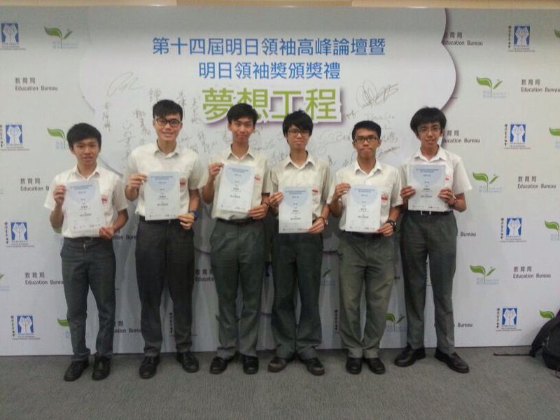 由教育局、傑出青年協會和青苗基金合辦的「第十四屆明日領袖高峰論壇暨明日領袖獎頒獎禮」已在7月9日假伊利沙伯體育館舉行。「明日領袖高峰論壇」至今已有14年歷史,計劃是希望透過論壇及頒獎禮進一步提升各得獎學生的領導才能,鼓勵他們與不同界別的傑出青年交流從中學習。今年本校分別在中三、中四及中五推薦了六位學生參加是次活動。六位同學均獲得大會頒發證書以證明其領導能力。