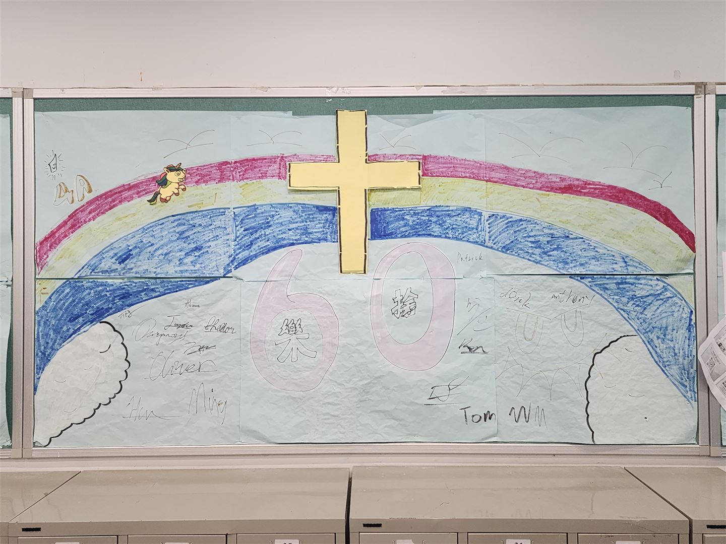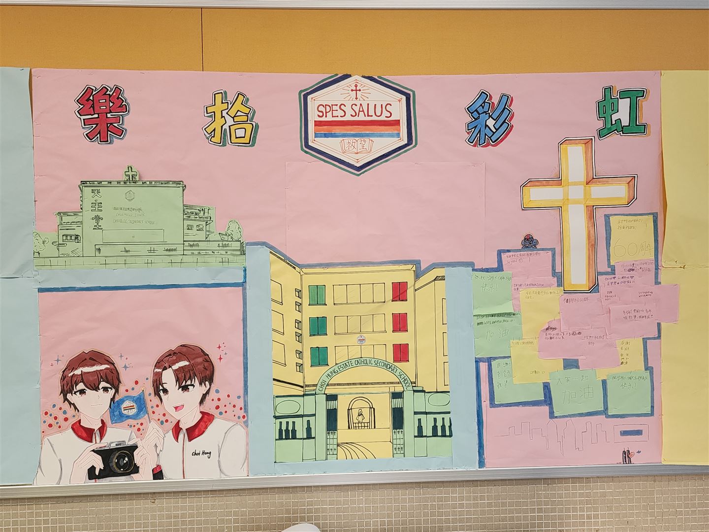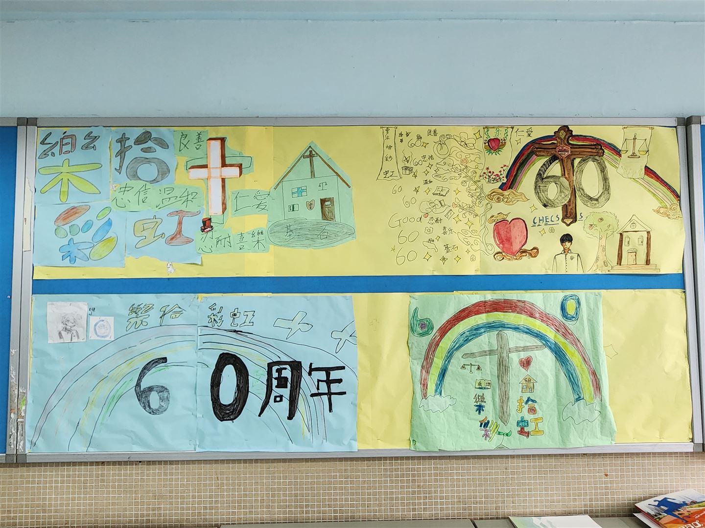 為慶祝彩虹邨天主教英文中學建校六十周年,宗教組特別舉辦「樂拾.彩虹」班際壁報設計比賽,藉此提升學生的宗教素養與創意表達。是次比賽以「樂拾彩虹」為主題,彩虹象徵天主的盟約與祝福,提醒我們天主常與我們同在,並以祂的愛陪伴我們生活。透過壁報創作,同學們能展現才華,在作品中融入宗教元素,引用聖經金句,共同表達對天主感恩的心;藉著色彩與文字,見證天主六十年來賜予學校的恩寵。恭喜以下得獎班別: