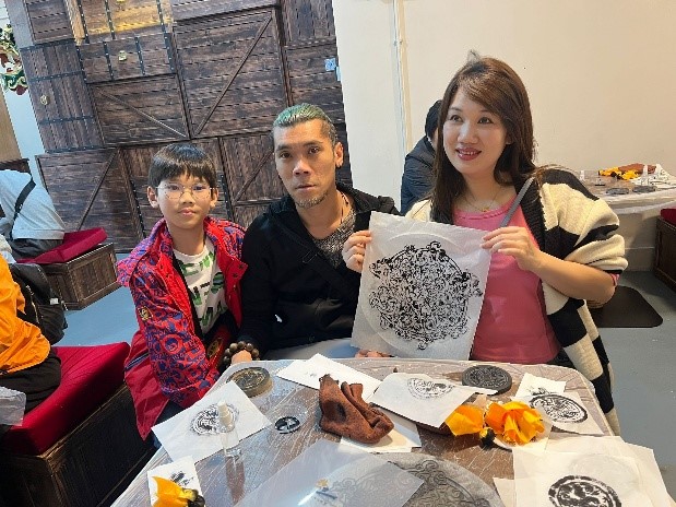 瓦當拓印活動則帶領大家走進傳統手工藝的世界。參加者透過導師的講解,認識瓦當是屋檐最前面的圓形瓦,學習以拓印技術,將獨特的瓦當圖案轉印到紙張上,感受古人智慧。大部分參加者是第一次接觸瓦當,讓我們對傳統文化有多一點的理解。